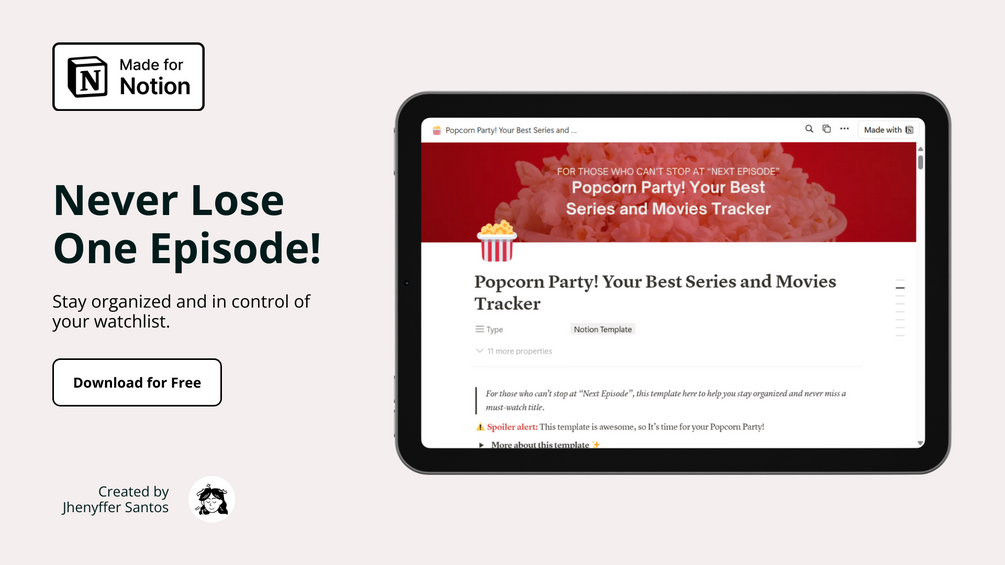Apply NowFor those who can’t stop at “Next Episode”, this template is here to help you stay organized and never miss a must-watch title.