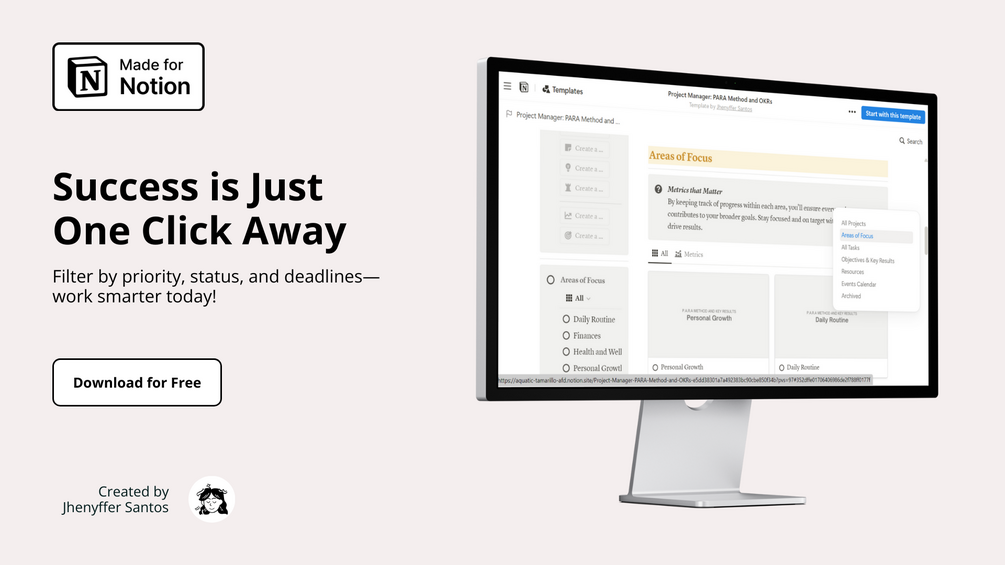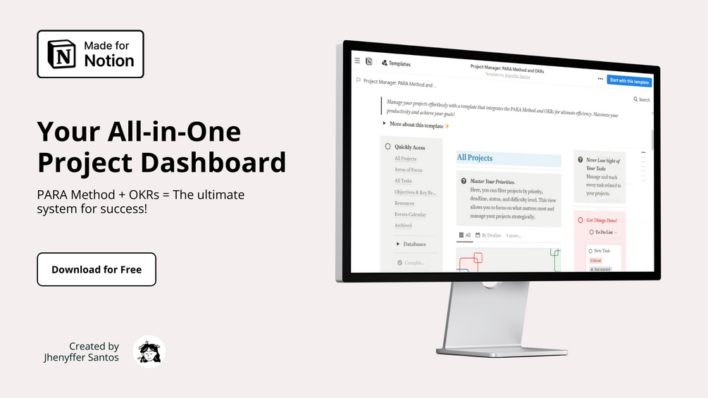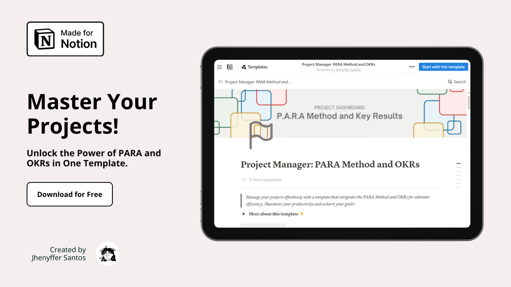 Manage your projects effortlessly with a template that integrates the PARA Method and OKRs for ultimate efficiency.